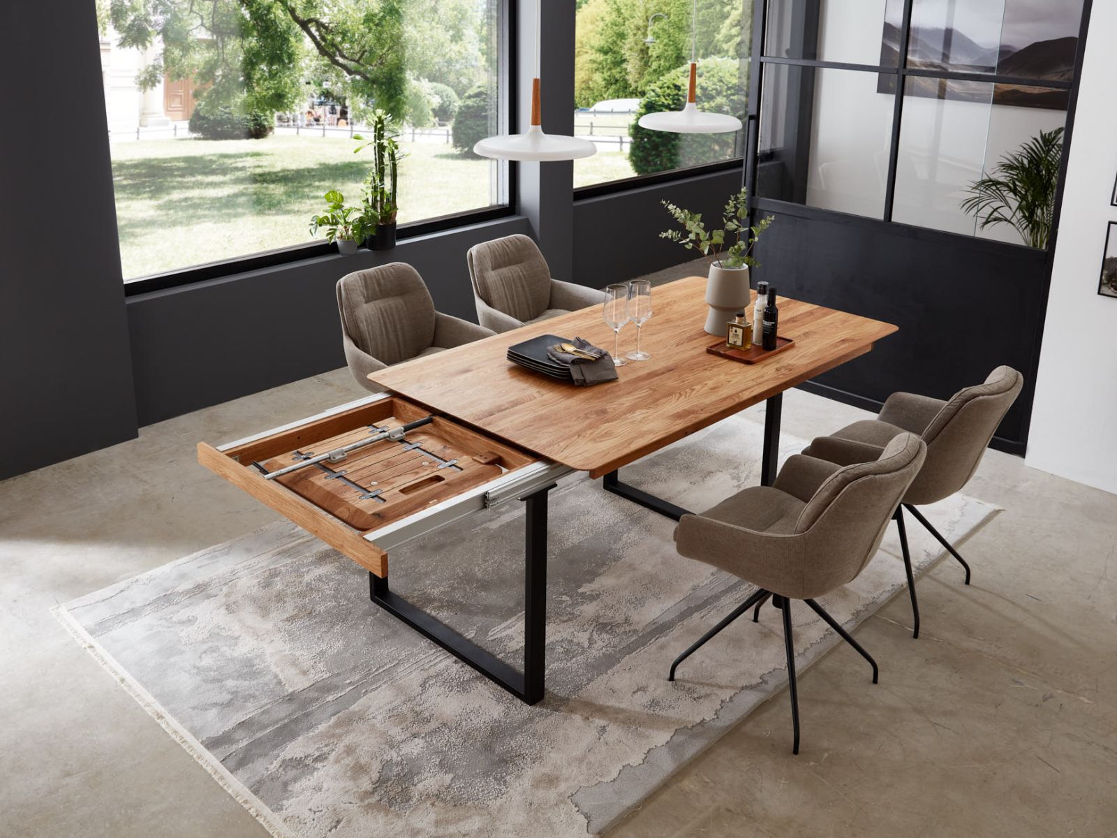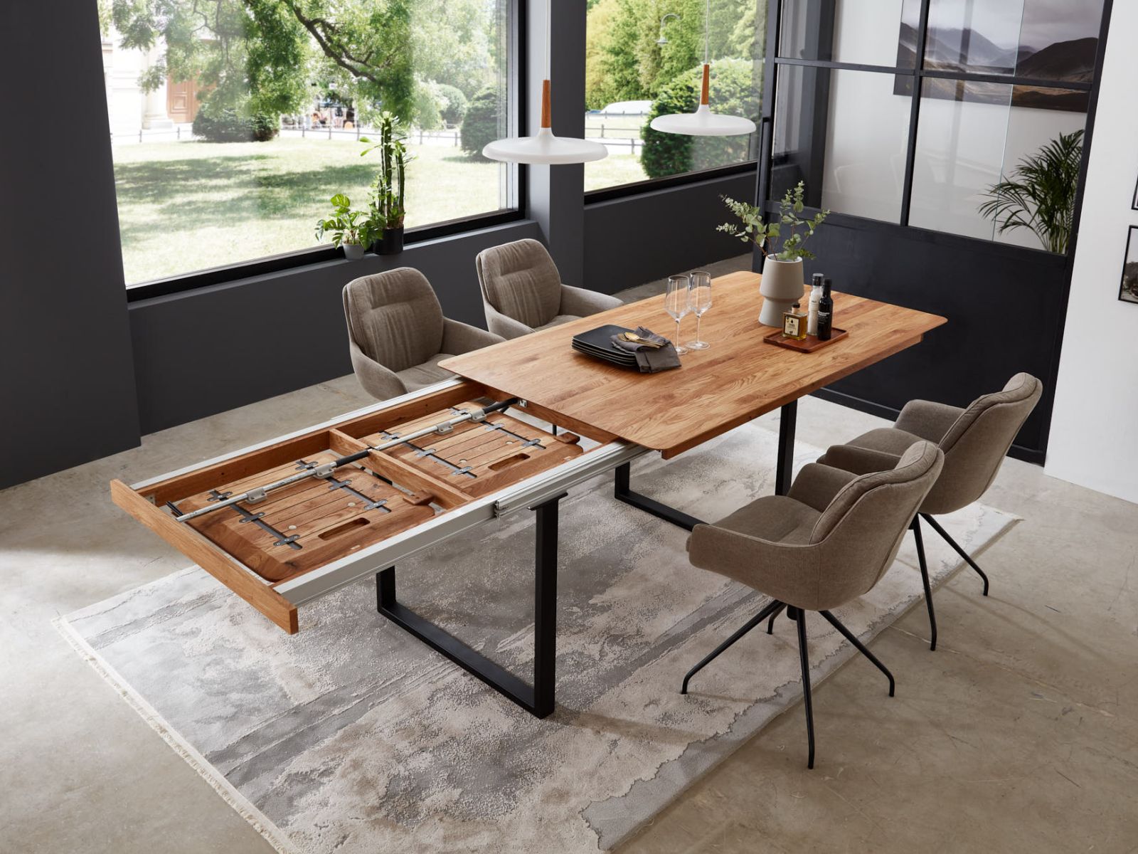 Das vollmassive Tischsystem lässt kaum Wünsche offen. Konfigurieren Sie Ihren eigenen Wunschtisch. Gerne unterstützen wir Sie dabei.