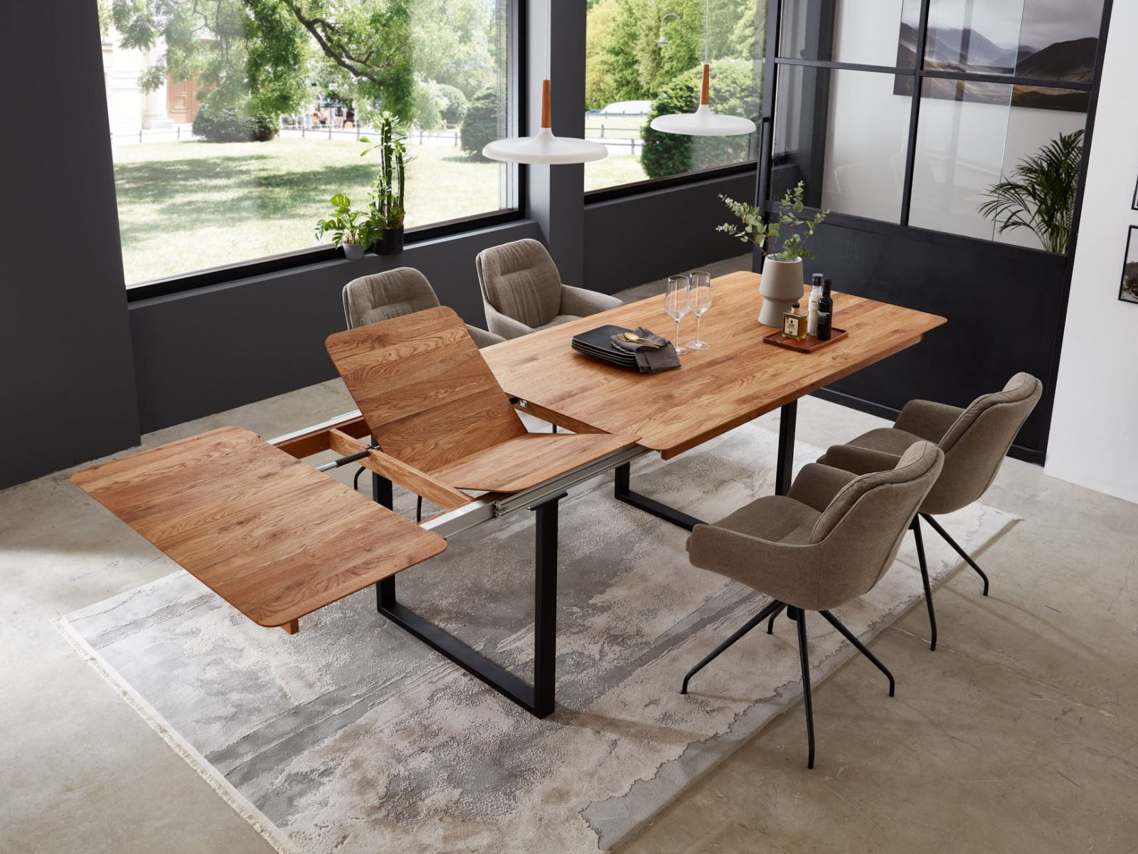 Ab 160 bis 220 cm mit integrierten Klappeinlagen in 3 Grössen erhältlich.