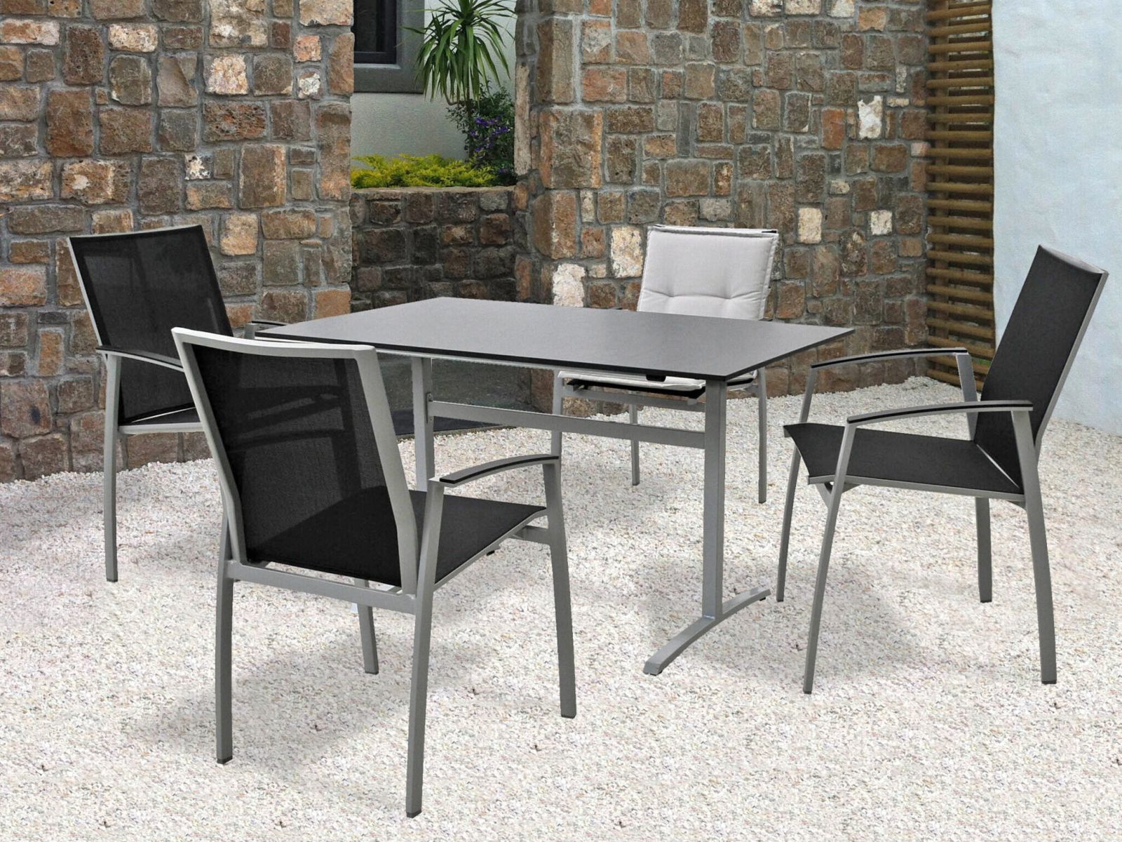 Das Gestell ist in Stahl anthrazit oder Stahl polarsilber und die Tischplatten in Keramik oder HPL (verschiedenen Farben) erhältlich.