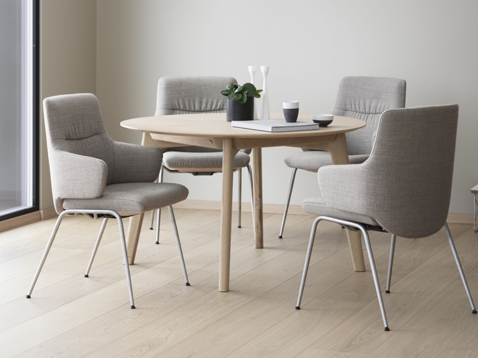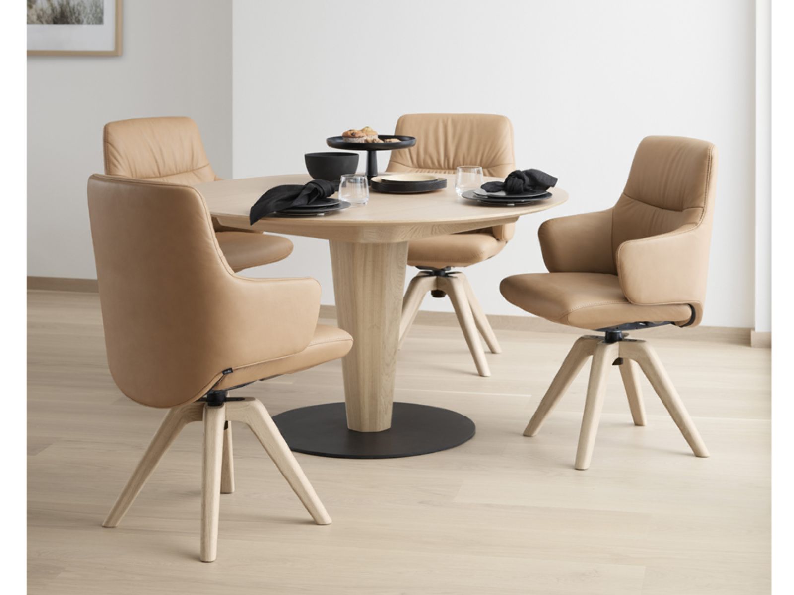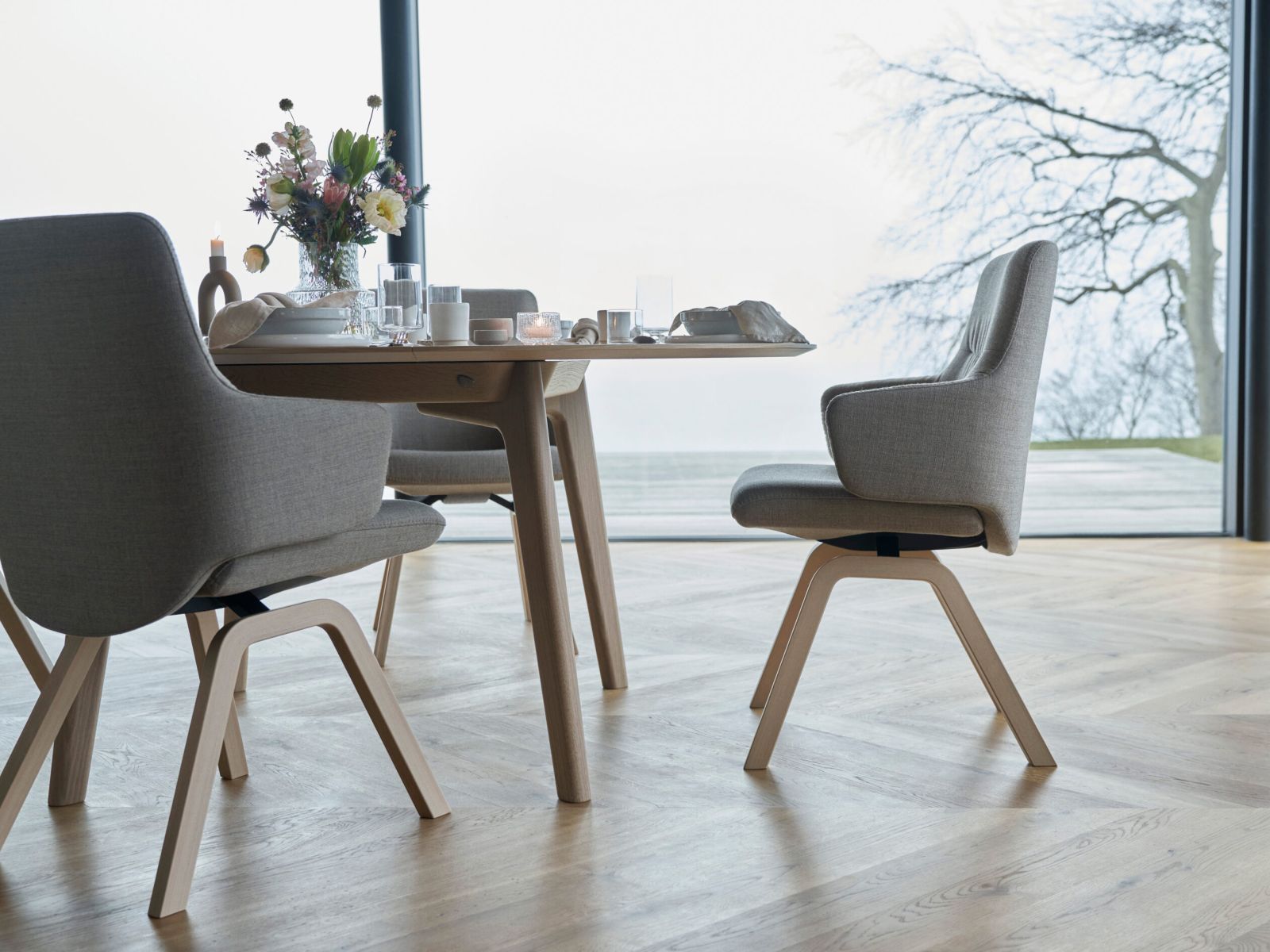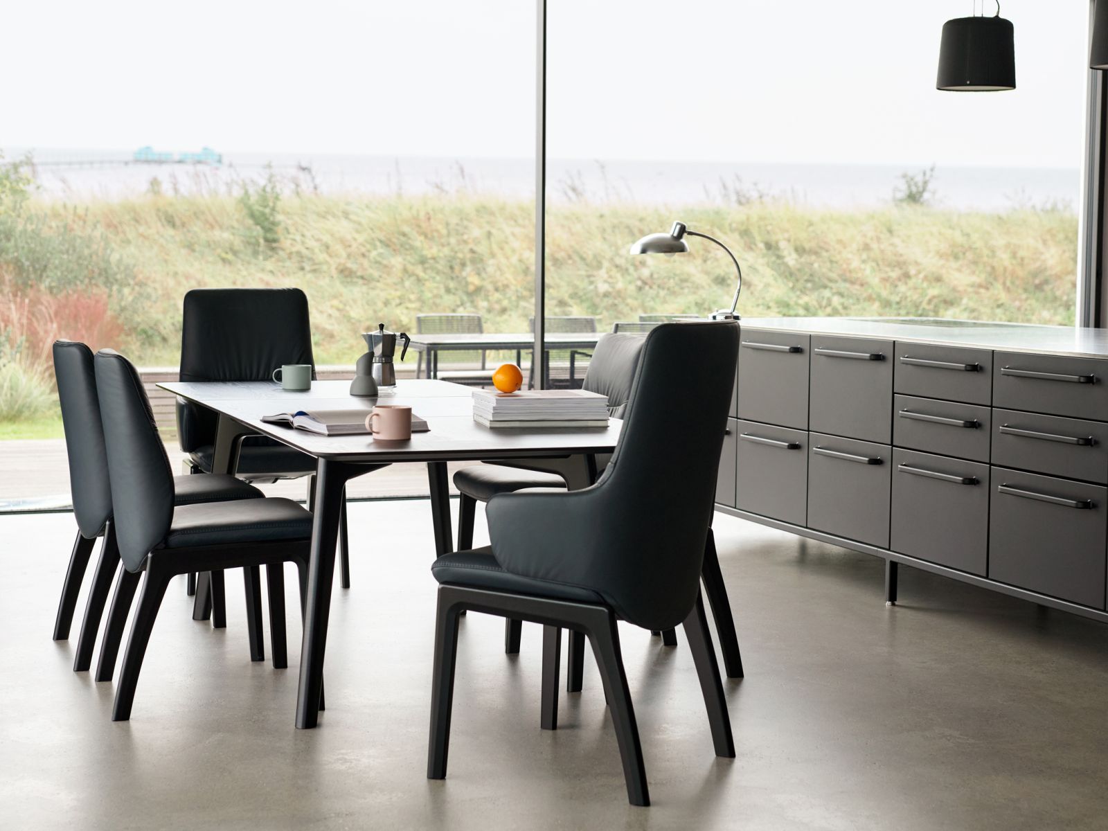 Verleihen Sie Ihren Esszimmerstühlen eine persönliche Note, indem Sie sie aus der Palette an Stressless®-Materialien und Farben und unseren Beinvarianten in Holz oder Stahl auswählen.