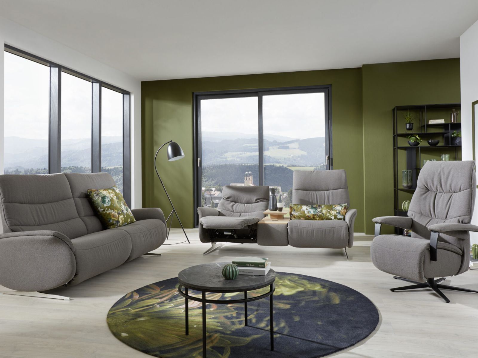 Die Polstergarnituren können mit einem aussenliegenden Akku ausgestattet werden, der in Silber oder Anthrazit erhältlich ist.