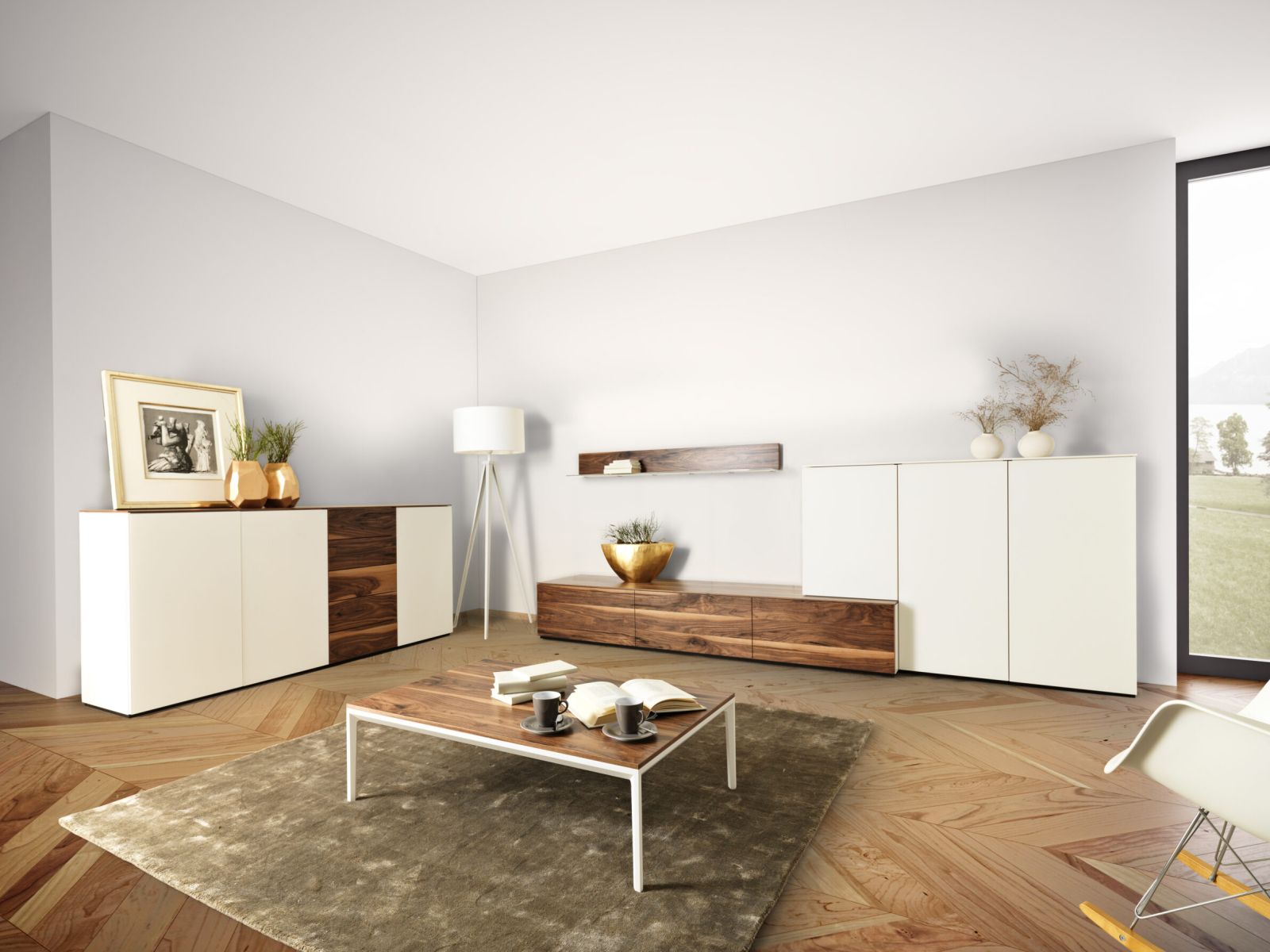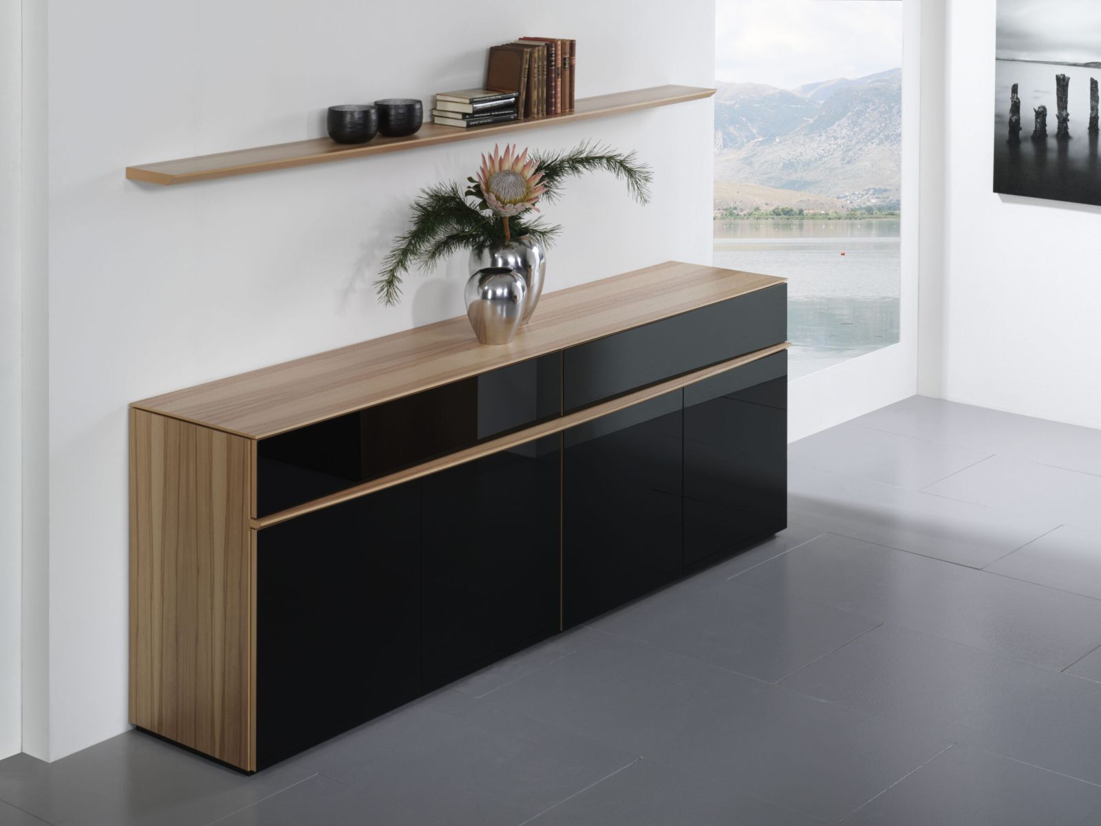 Holz, Glas und Metall sowie das elegante Design bringen den zeitlosen Charakter dieses Möbelprogrammes besonders schön zur Geltung.
